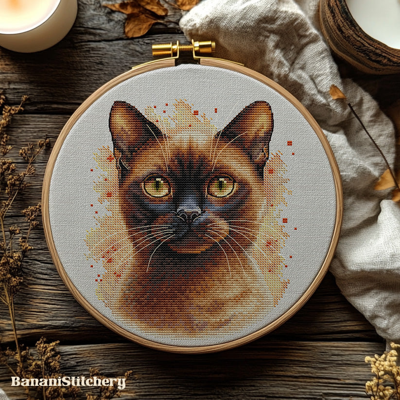 Create a realistic Burmese Cat cross stitch pattern with this detailed PDF & SAGA digital embroidery design. Perfect for cat lovers, this cross stitch pattern captures the beauty of the Burmese breed and makes a thoughtful handmade gift, wall art, or pet memorial