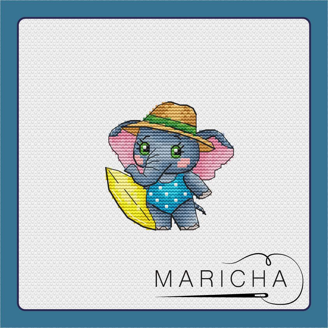 Elephant Surfer - PDF Cross Stitch Pattern