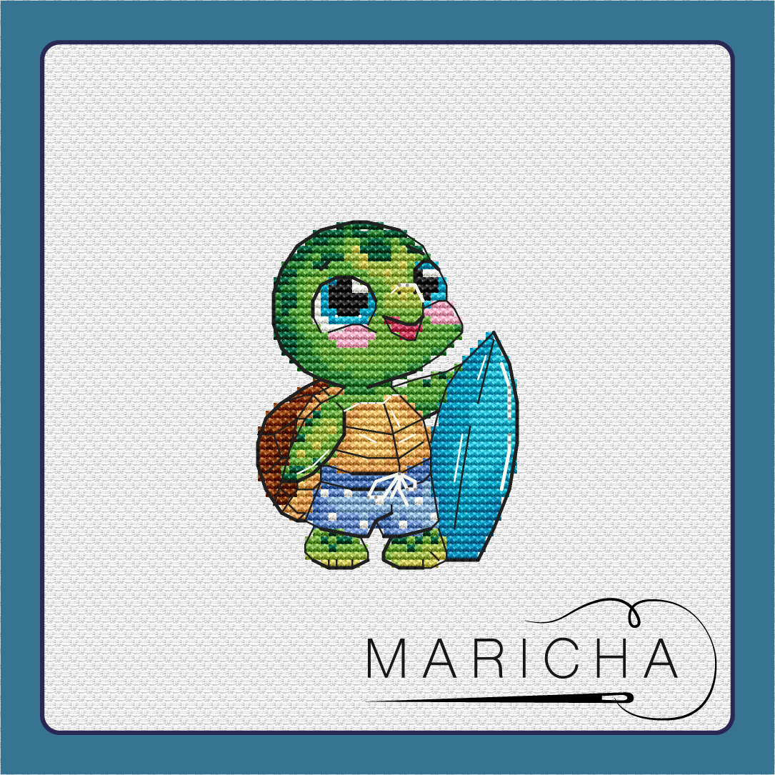 Turtle Surfer - PDF Cross Stitch Pattern