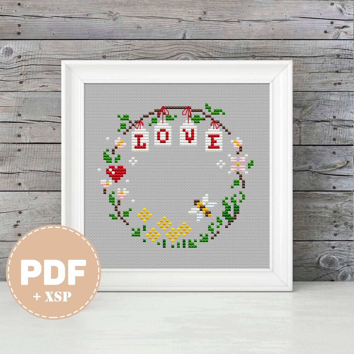 Wreath Love - PDF Cross Stitch Pattern