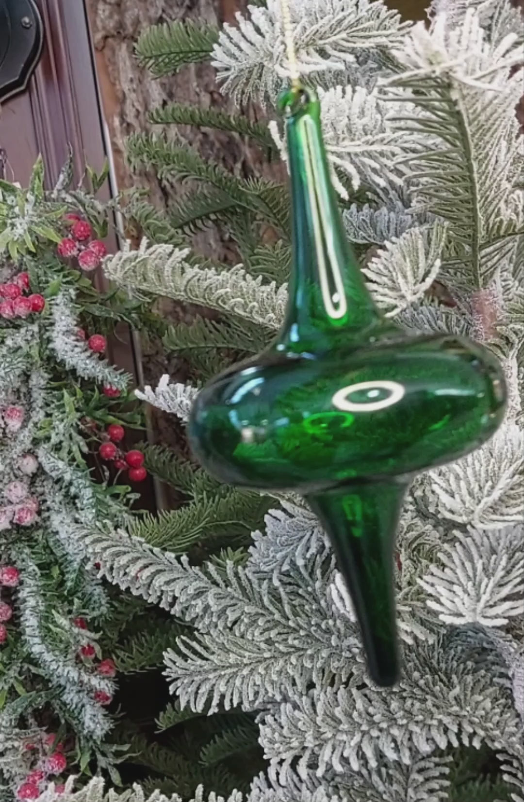 Dark Green Spire Christmas Glass Ornament Wizardi F07M10-11