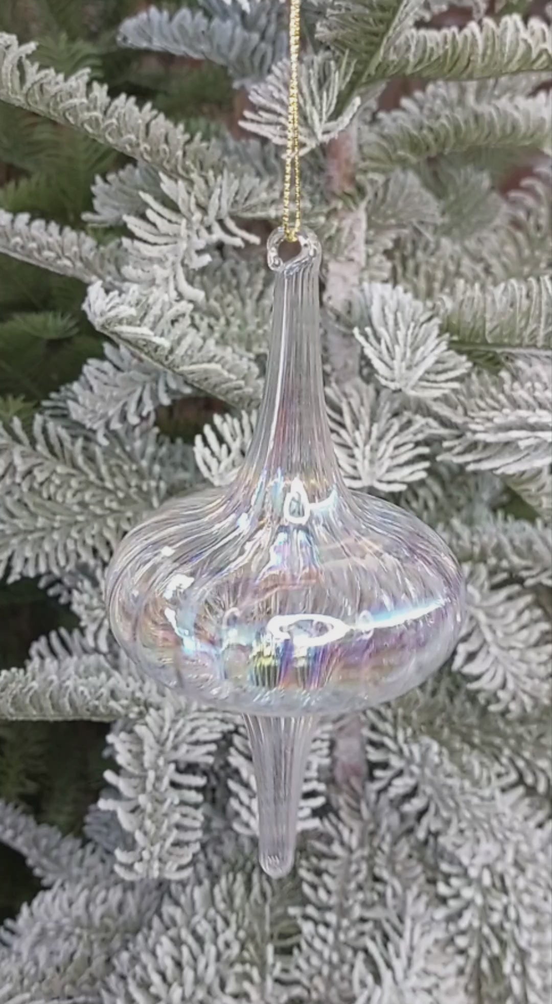 White Twisted Spire Christmas Glass Ornament Wizardi F07M10-10