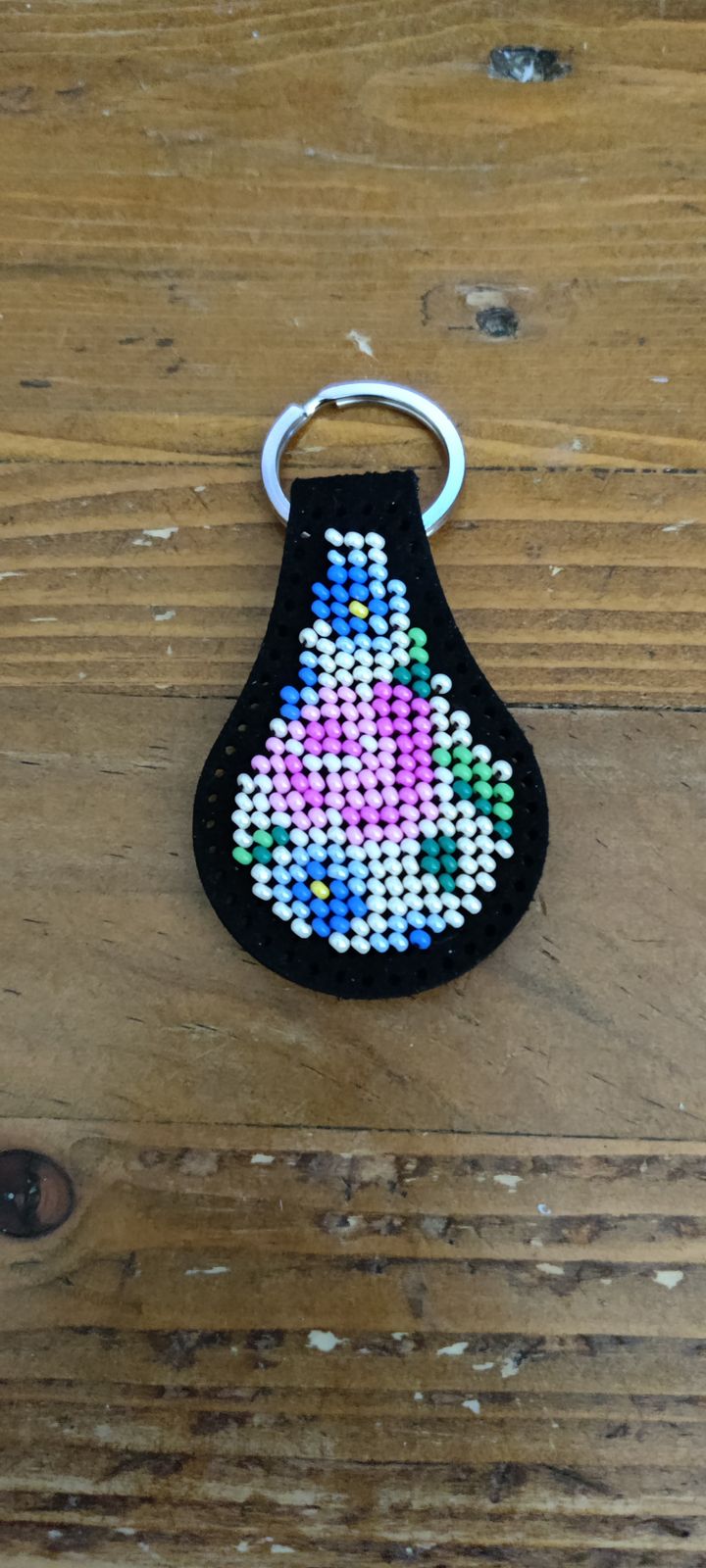 Bead embroidery kit on artificial leather Key ring FLBB-096