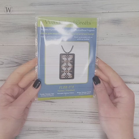 Bead embroidery kit on artificial leather Pendant FLBB-078