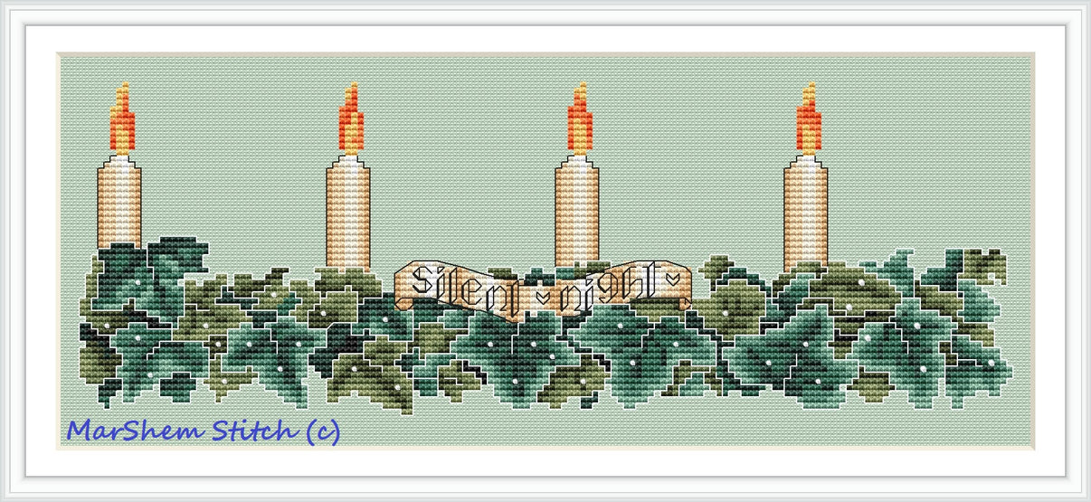 Advent Wreath Silver Ivy - PDF Cross Stitch Pattern
