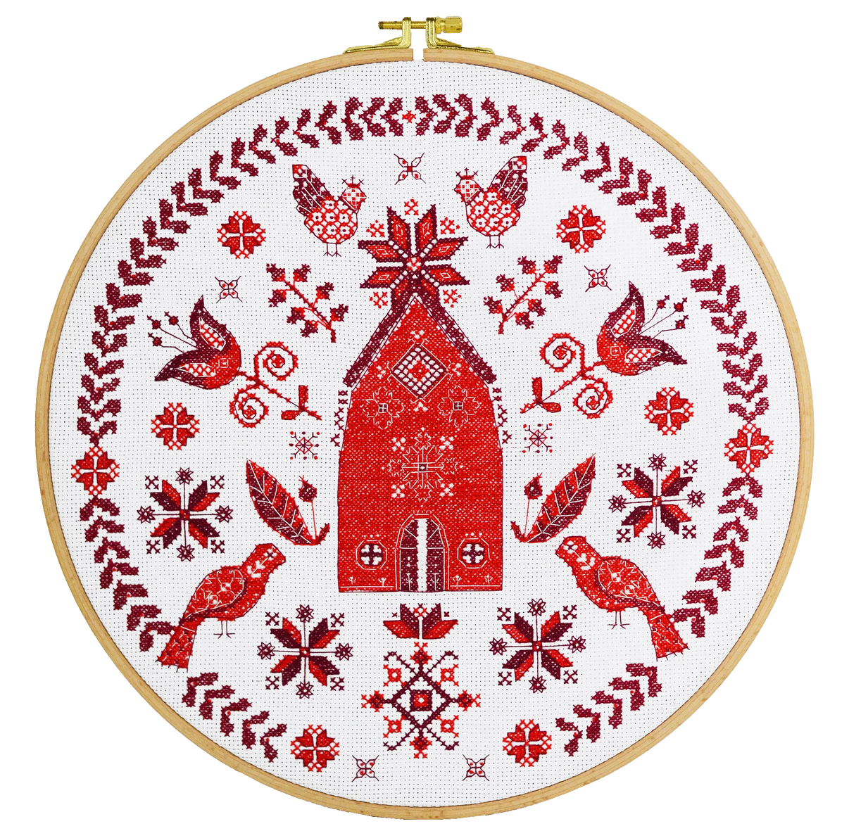 Kit contains: Canvas Zweigart 100% cotton (14 count), convenient symbol scheme + instruction in 8 languages, needles. The set is completed with canvas 400*400 mm white, count 14. The set is not complete with hoops. The set is complete with additionally PRECIOSA #10 beads and needle for embroidery with beads. Floss on a convenient organizer - 100% cotton (4 colours). Dimensions 30*30cm / 11,81*11,81in. Made in Ukraine.