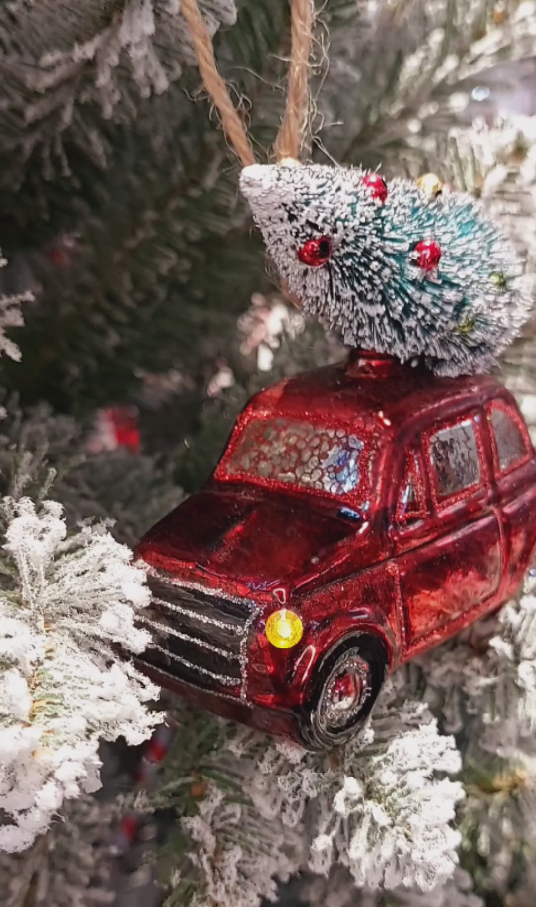Christmas Glass Ornament - Car with Christmas Tree by Wizardi F07M3-9 HB-SY25266