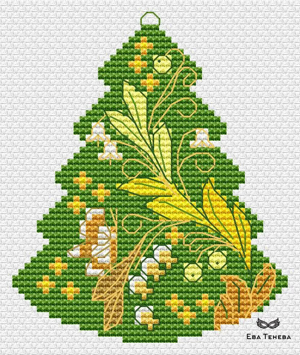 Christmas trees. Khokhloma Lilies of the Valley - PDF Cross Stitch Pattern