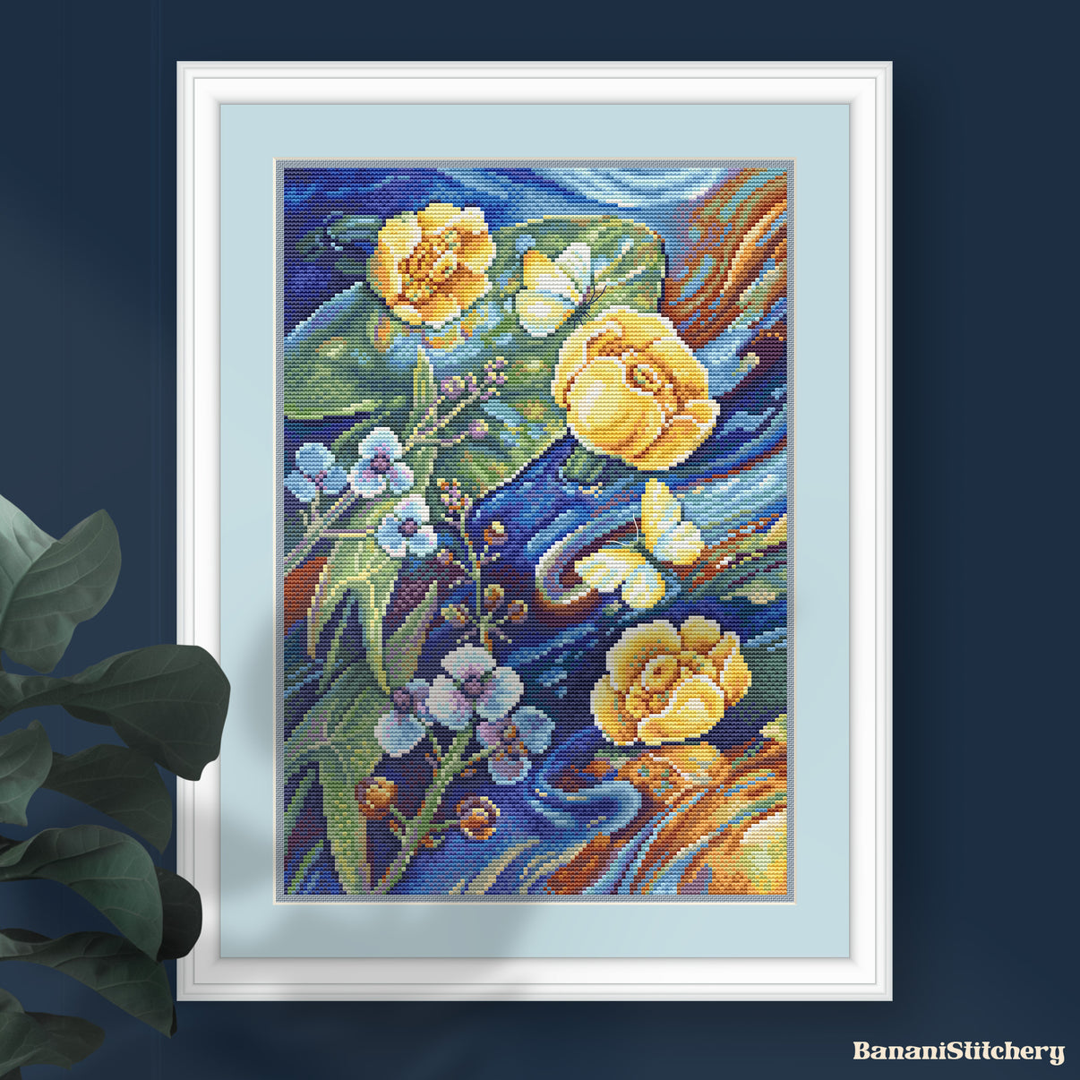Bring a touch of calm and summer beauty to your stitching with Cool Summer — a full coverage cross stitch pattern featuring golden water lilies, delicate butterflies, and shimmering lake reflections. The...