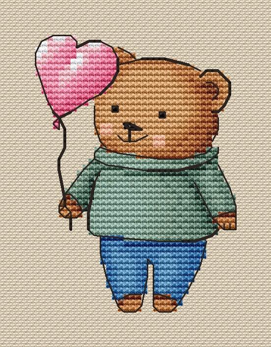 CROSS STITCH PATTERN DETAILS: Size in crosses: 34 x 47 Size: 14 (27) count - 6.2 х 8.5 cm \ 2.44 x 3.34 in \ 2.5 x 3.4 dm Threads: DMC Colors: 17 colors, 5 blends Stitches: Full stitches, back stitch, a few quarter crosses on a balloon