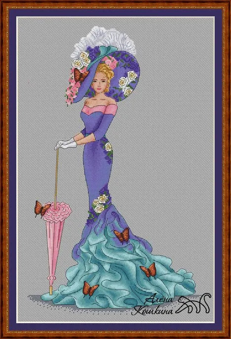 CROSS STITCH PATTERN DETAILS: Size 144*235 crossesOn 14 canvas 26*43 cmRecommended canvas Aida 3706/713, Aida 14 ct 3706/594, Lugana 3835/7729Threads DMS/PNK pure 43 colors of which 11 are blendsUsed: full cross,...