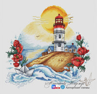 Lighthouse with Poppies - PDF Cross Stitch Pattern - Wizardi