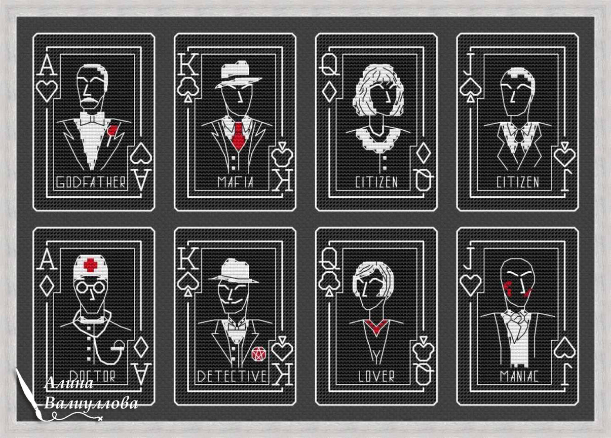 CROSS STITCH PATTERN DETAILS: Stitches: 162*109 (each card 36*52 stitches) Size in cm (without allowances):for 14 count canvas – 29,4*19,8 (6,5*9,4 cm one card)for 16 count canvas – 25,7*17,3 (5,7*8,3 cm one...