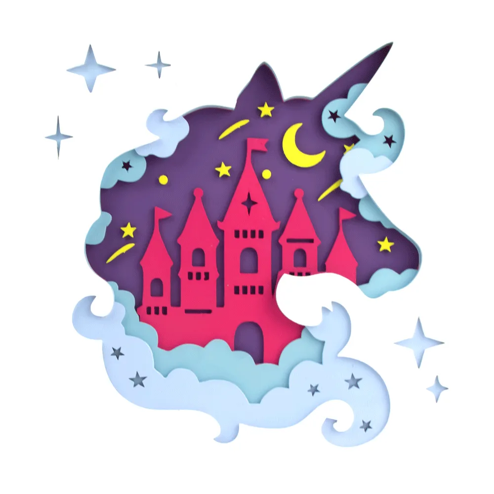 Rosa Talent Unicorn - 3D Painting Set. Primed Fiberboard. 5 Layers. 11.81*11.81 inches.